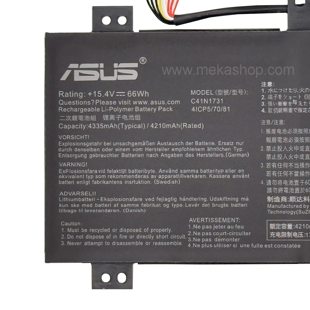 باتری اورجینال لپ تاپ ایسوس Pn: C41N1731) Asus GL504) سازگار با تمام شماره قطعه های زیر است: