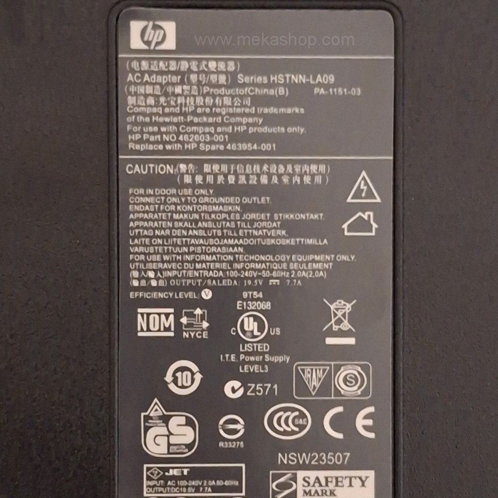 شارژر آداپتور لپ تاپ اچ پی Hp 19.5V 7.7A Pin 4.5*3.0 سازگار با تمام شماره قطعه های زیر است: