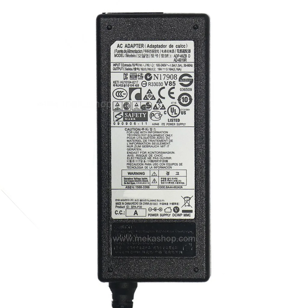 شارژر آداپتور لپ تاپ سامسونگ Sumsung 19V 3.16A Pin 5.5*3.0 سازگار با تمام شماره قطعه های زیر است: