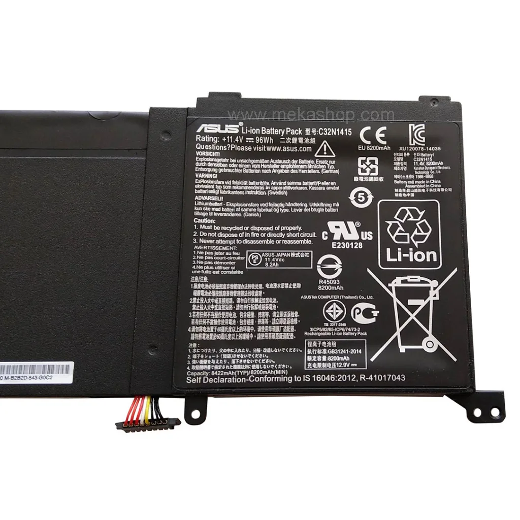 باتری اورجینال لپ تاپ ایسوس 6Cell (Pn: C32N1415) Asus ZenBook (Pro) UX501 تایپ B سازگار با تمام شماره قطعه های زیر است: